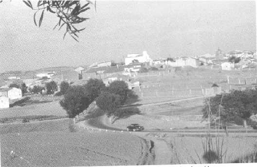 Esta panorámica muestra a las claras el cambio del pueblo. Obsérvese también la desaparición de muchos olmos de la carretera por la grafiosis
