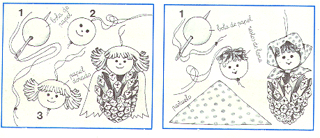 Pasa un hilo por la bola y píntale la cara. Pégale