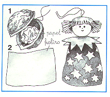 aguja deben quedar fuera. Viste la nuez con un trozo de fieltro adornado con